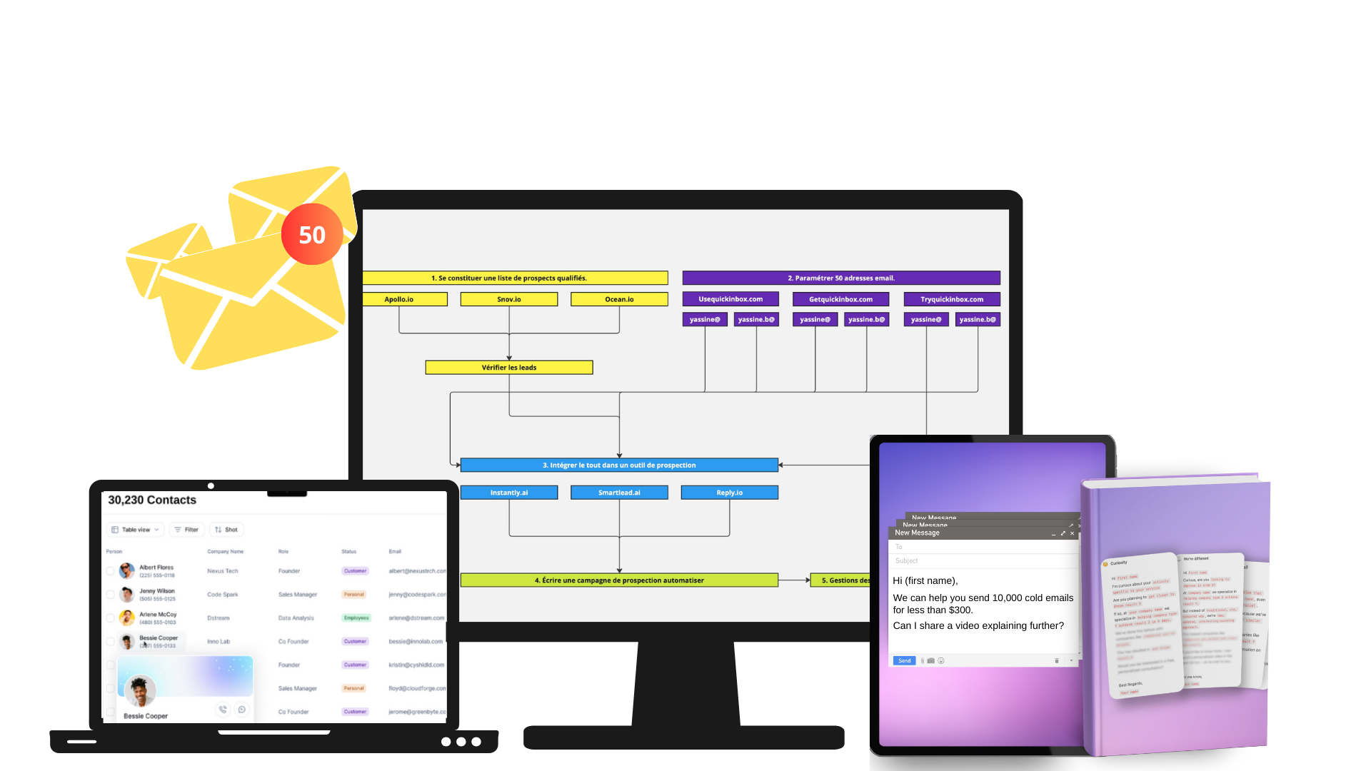 Au lieu de passer des mois à essayer de maîtriser la prospection par mail, vous pouvez obtenir notre système complet.